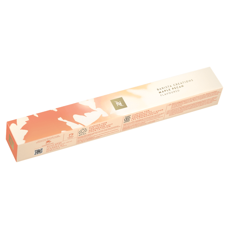 10 cápsulas de café tostado y molido con sabor para el sistema Nespresso. Sabor a arce y nuez pecana.